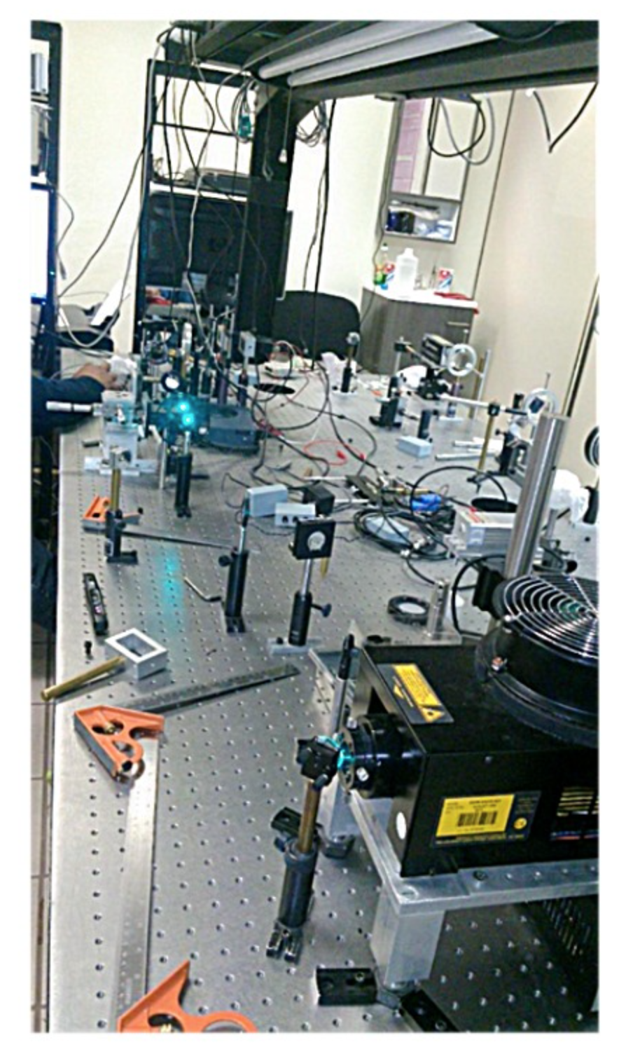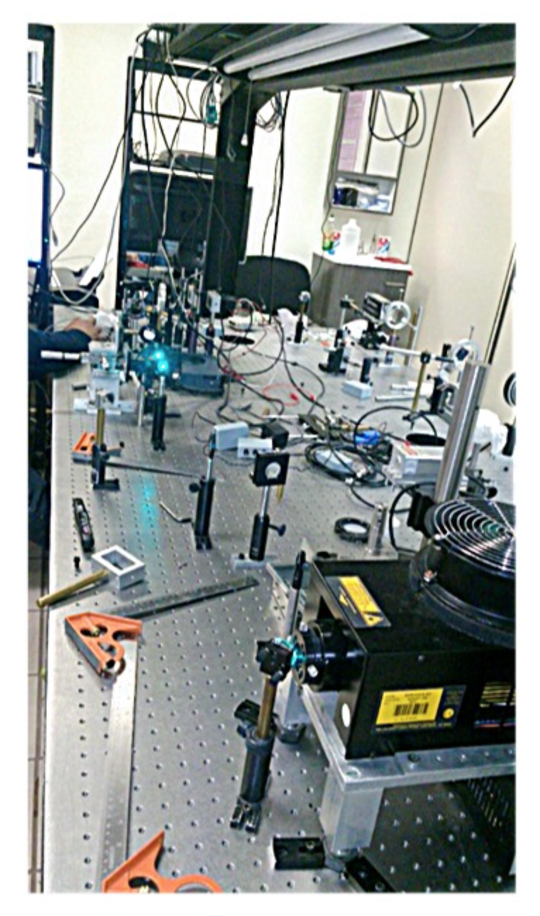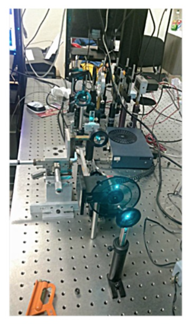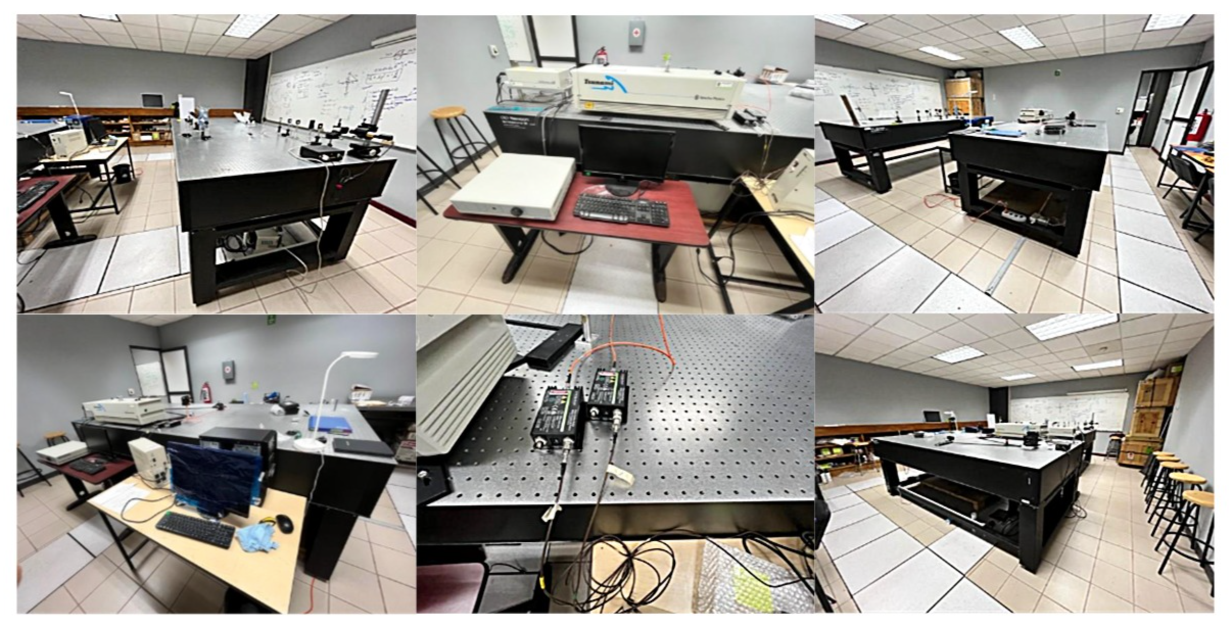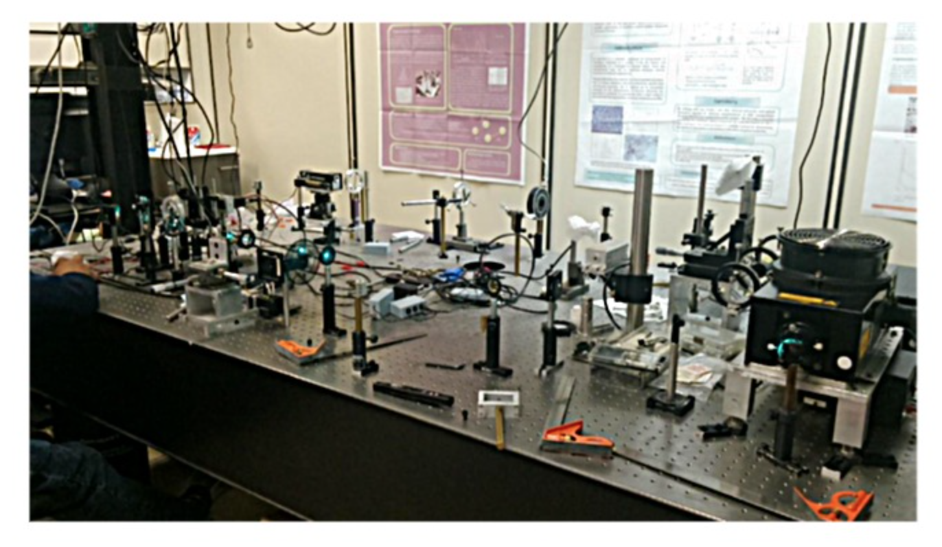 Montaje de varias técnicas ópticas y térmicas en una mesa óptica