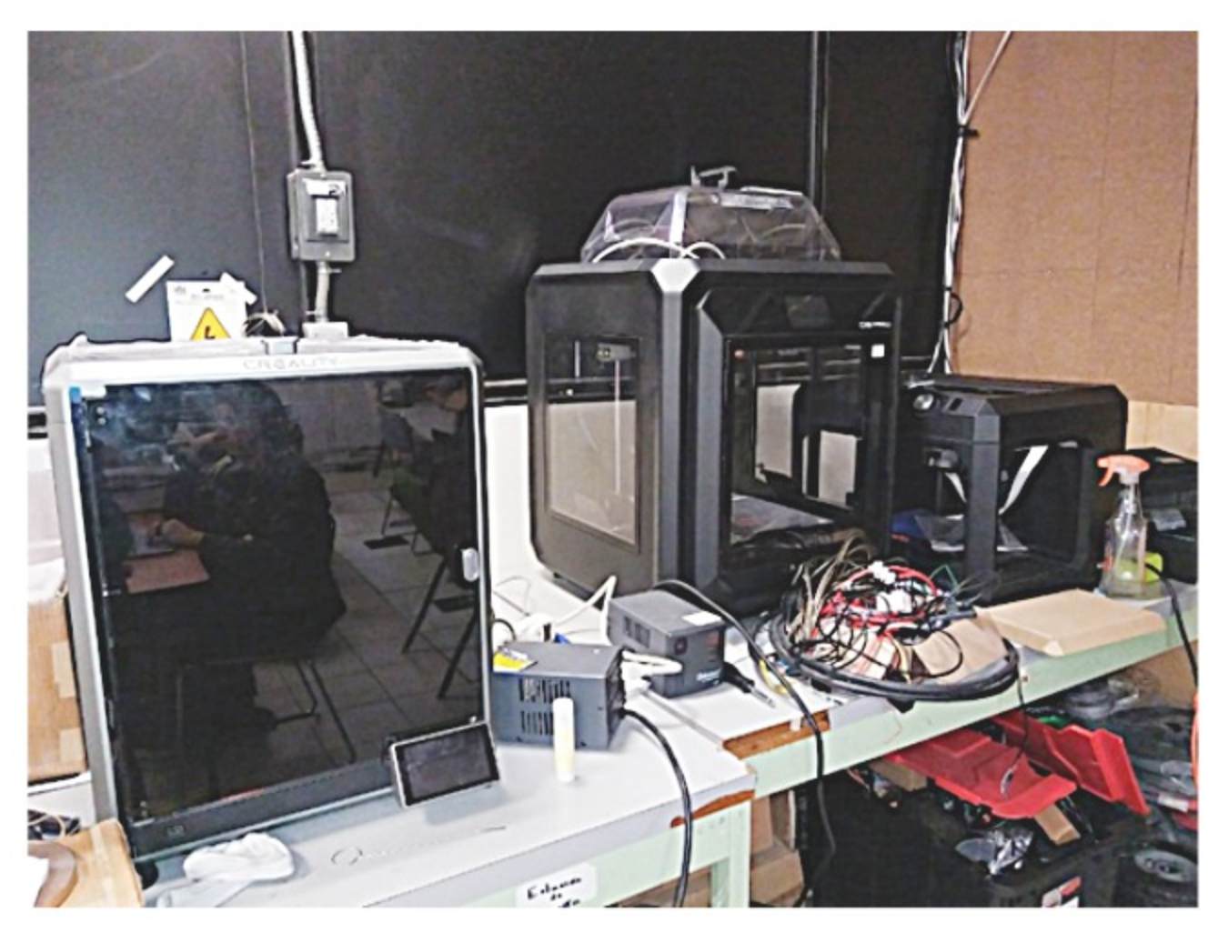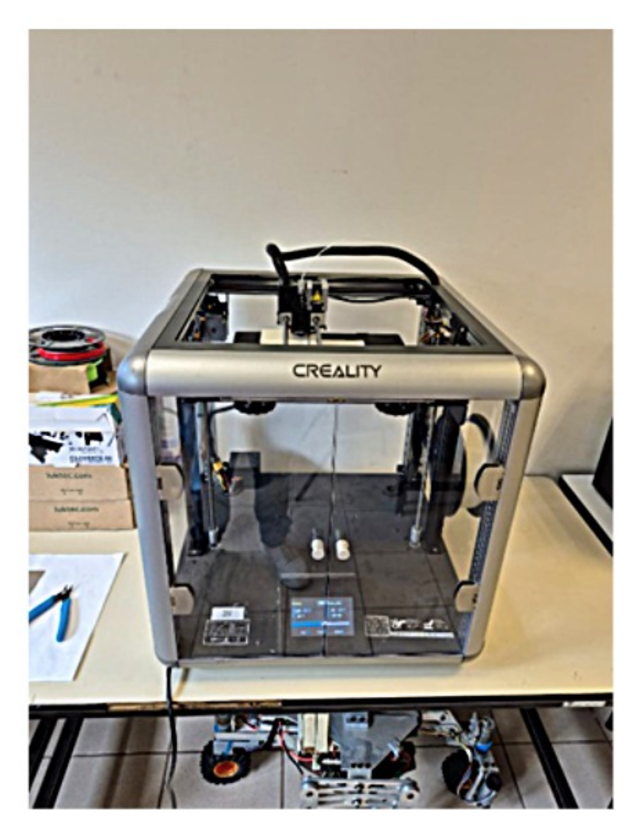 Impresora 3d filamento marca Creality Sermoon D3 Pro (equipo personal). Impresora 3D de filamento Creality K1 Max (equipo personal). Impresora 3d PLA makerbot replicator 2. Equipos utilizados en la generación de prototipos por manufactura aditiva.