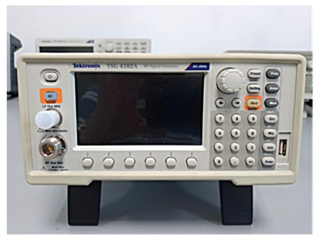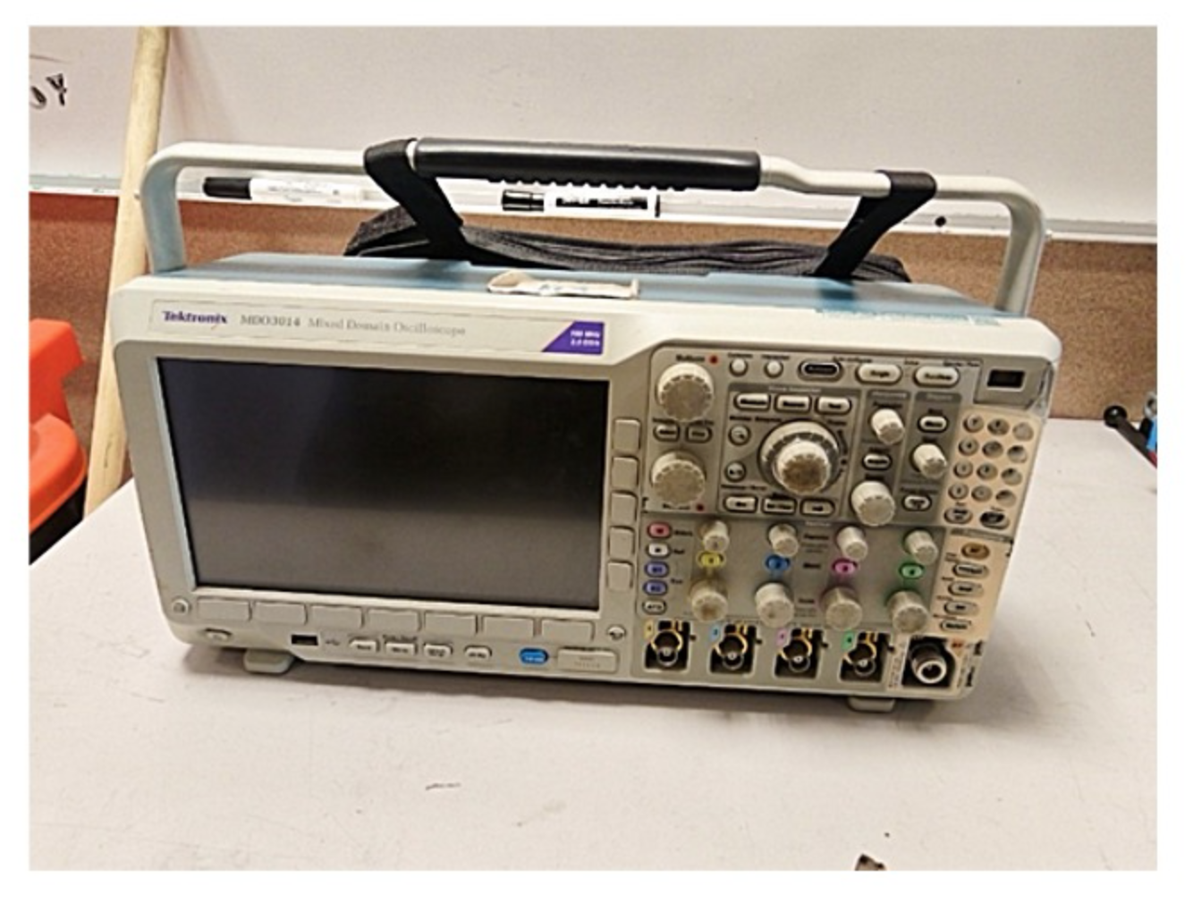 Osciloscopio Tektronix MDO3014. Equipo utilizado para mediciones de mayor ancho de banda, así como generación de señales.