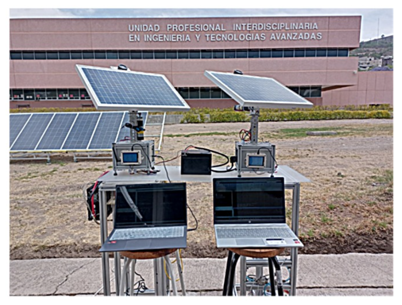 Fig. 1. Sistemas robóticos para aplicaciones de seguimiento solar y sistemas de monitoreo inteligente para el registro de datos mediante comunicación inalámbrica, basados en Internet de las Cosas.